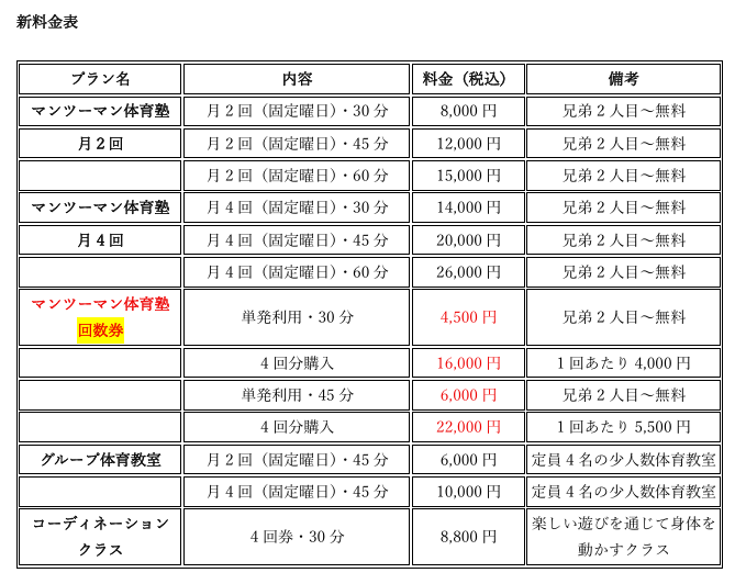 体育塾の体験について